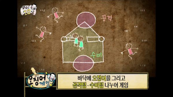오징어는 놀이하는 인원이 모두 그 안에 들어갈 수 있는 크기로 그리면 된다. 이렇게 간단 플레이를 통해 수급이 가능하고. 넷플릭스 lt 오징어.